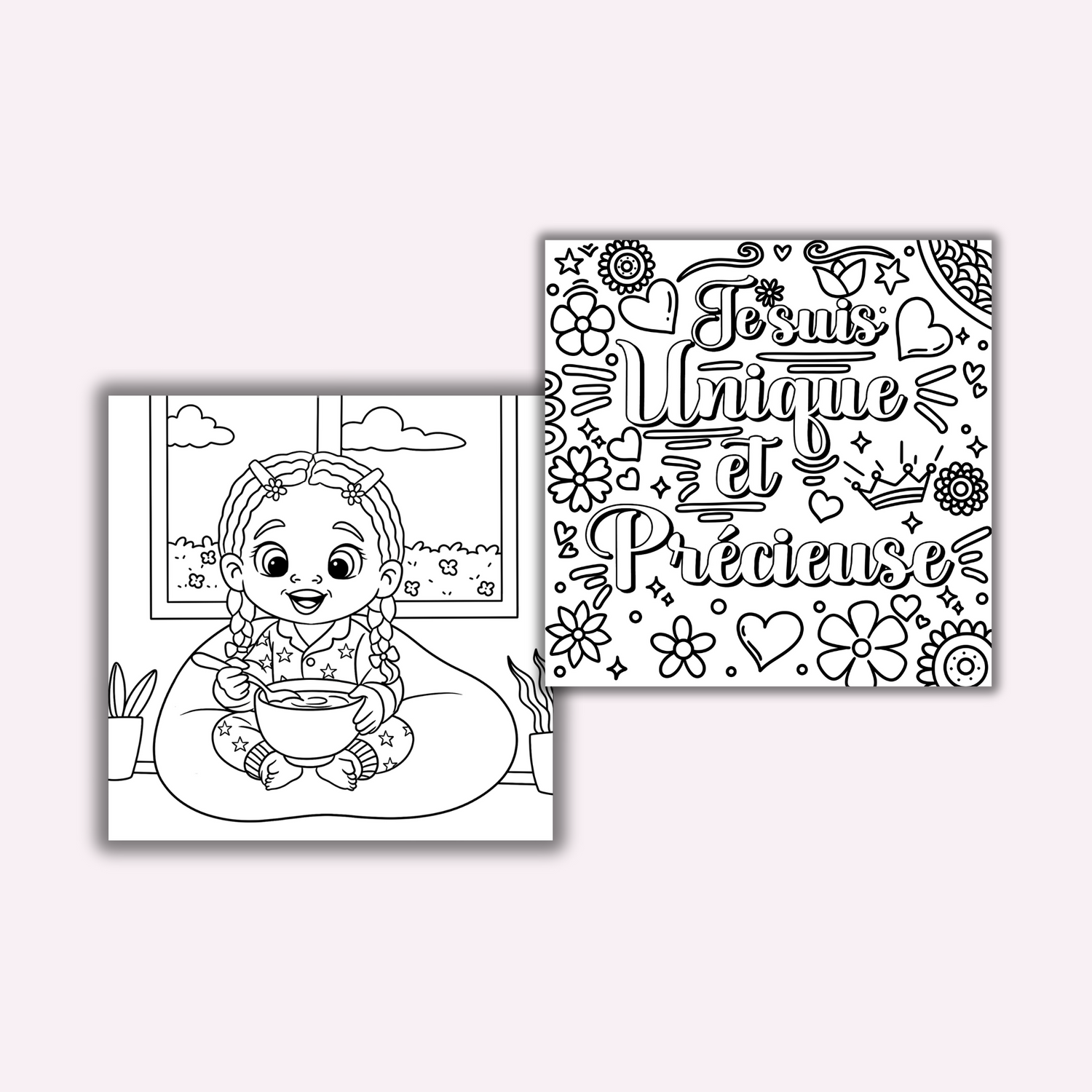 J'ai alors créé cet univers cosy relaxant où chaque coloriage devient un moment pour lever ta tête, remettre ta couronne et être fière de qui tu es !